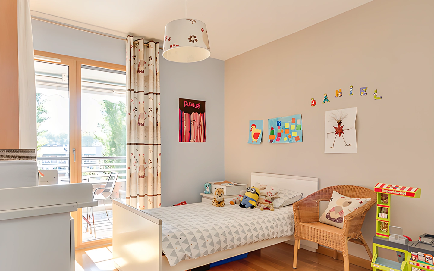 Environnement calme et verdoyant situé à proximité des commerces et du lac à pied.