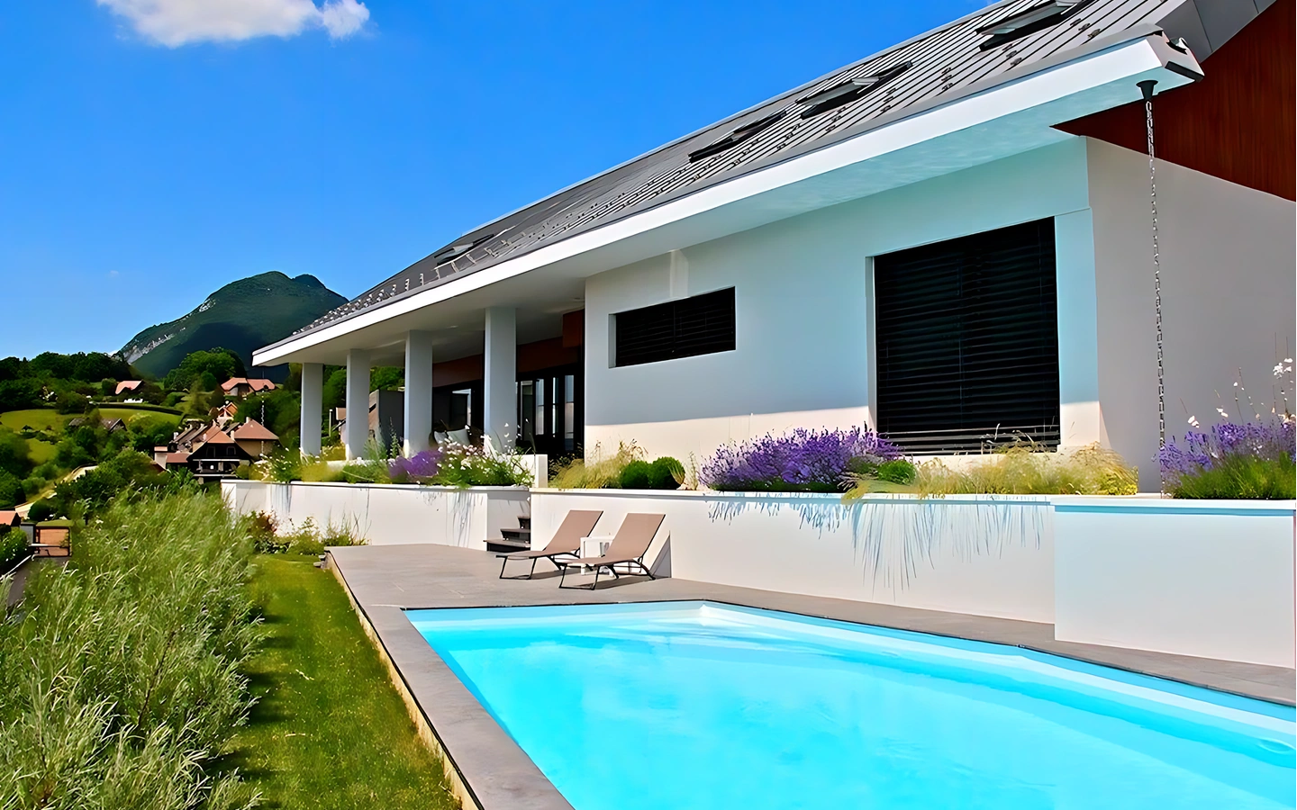 Maison moderne 6 pièces avec piscine vue sur le lac et les montagnes
