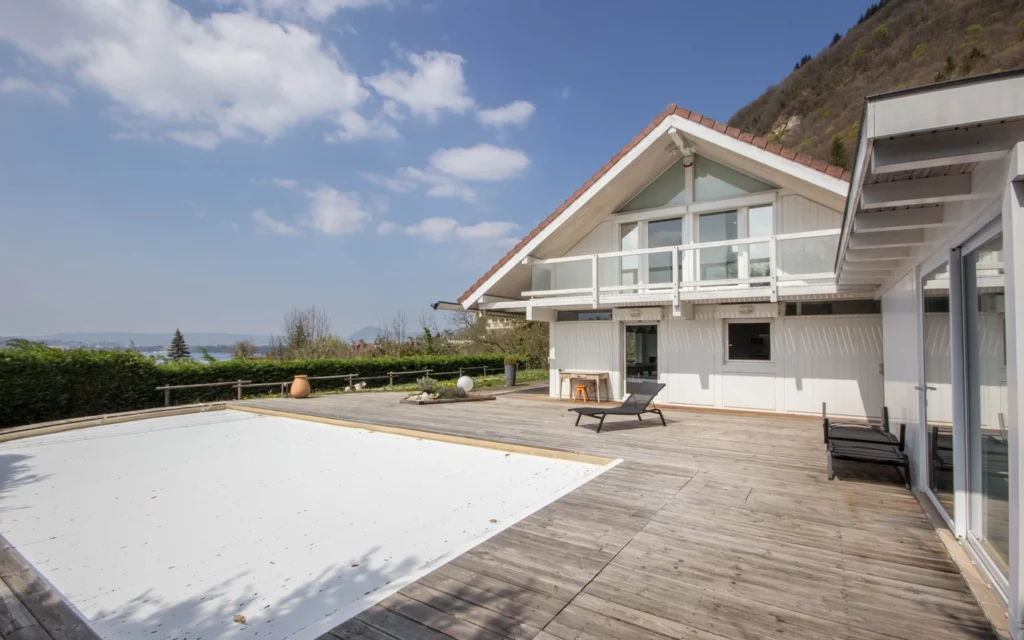 Maison ossature bois avec piscine chauffée – Vue lac d’Annecy